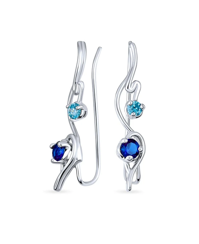 Bling Jewelry Swirl Wire Ear Pin Climbers Aqua Blue Cubic Zirconia Earrings Royal Blue Cz Crawlers Sterling Silver