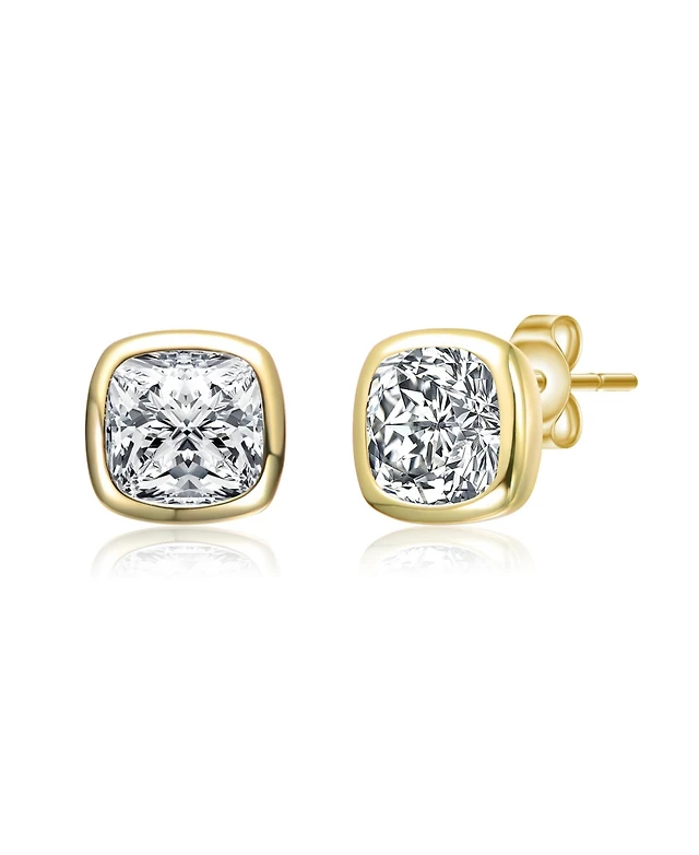 Women's 14k Gold Plated Square Cubic Zirconia Stud Earrings Set, 8 Pieces