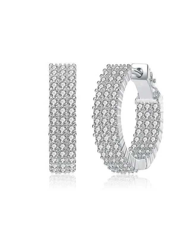 Rhodium Plated Cubic Zirconia Three Row Hoop Earrings
