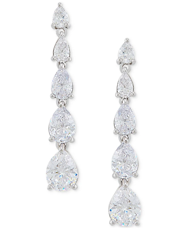 Cubic Zirconia Round & Baguette Linear Drop Earrings