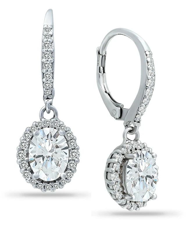Sterling Silver Oval and Round Cubic Zirconia Adorn Leverback Earrings
