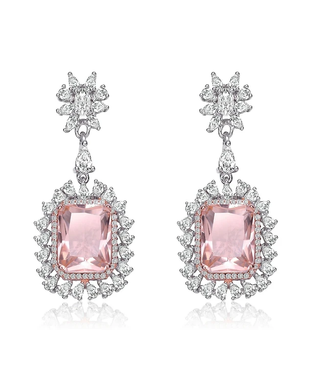 Rachel Glauber White Gold Plating with Pink Cubic Zirconia Halo Dangle Earrings