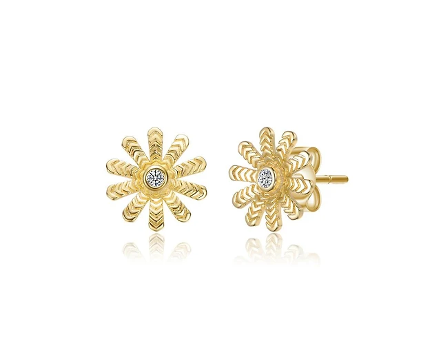 Sterling Silver Cubic Zirconia Two Tone Sunflower Earrings