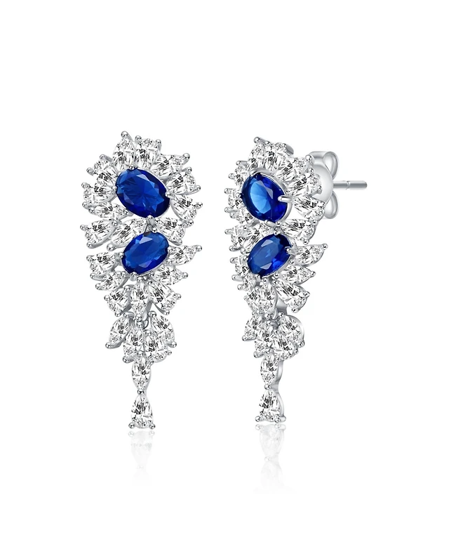 Blue Spinel & Cubic Zirconia Double Pear Stud Earrings