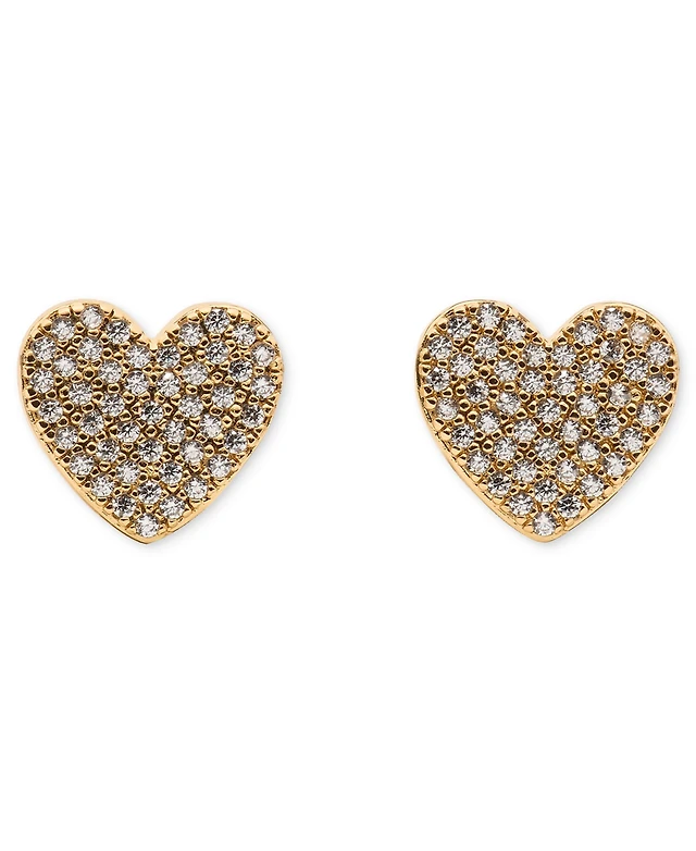 Cubic Zirconia Pave Heart Stud Earrings in 14k Gold-Plated Sterling Silver