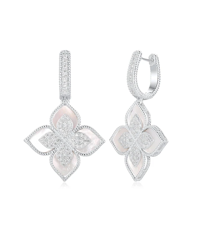 Sterling Silver White Gold Plated Radiant and Round Cubic Zirconia Adorn Leverback Earrings