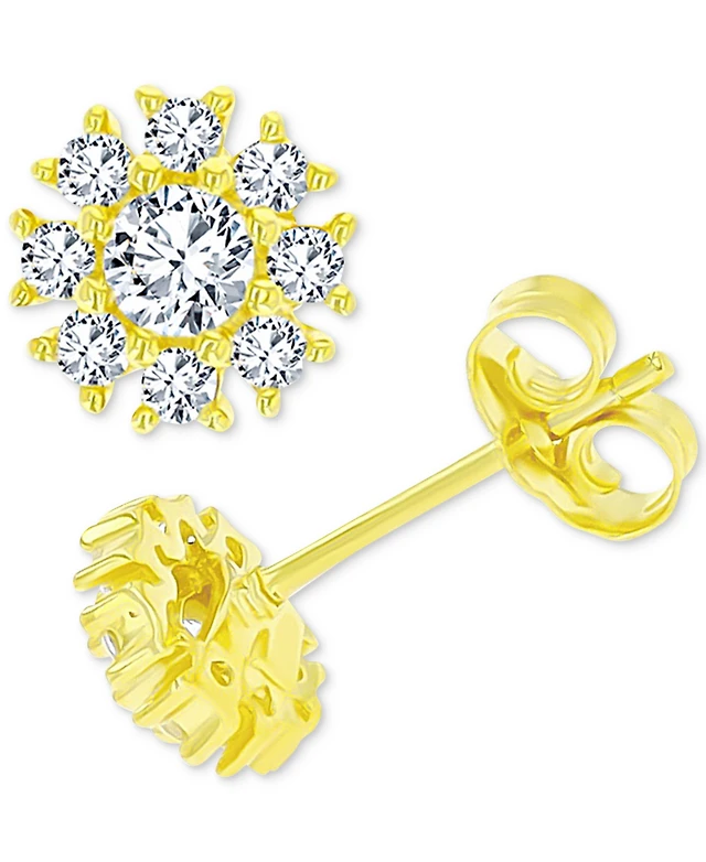 Sterling Silver 14k Gold Plated Cubic Zirconia Solitaire Drop Stud Earrings
