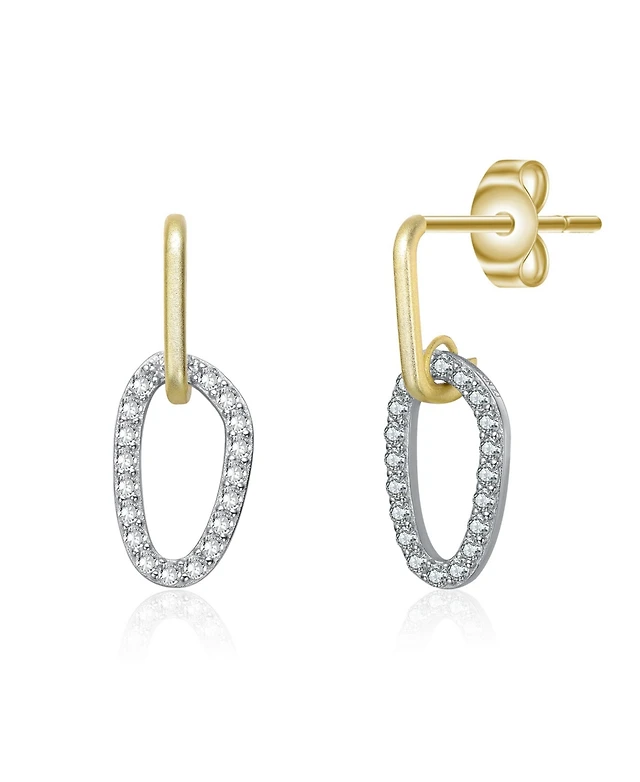 Rachel Glauber Elegant Cubic Zirconia Encrusted Oval Hoop Drop Earrings