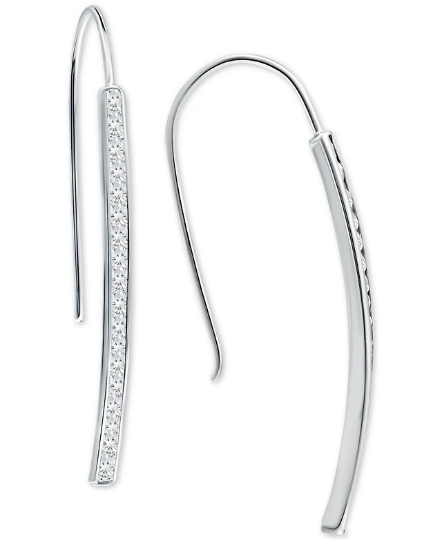 Sterling Silver Clear Cubic Zirconia Linear 3 Prong Dangle Earrings