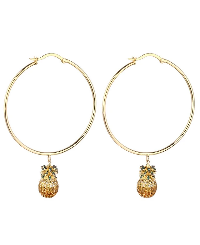 14K Gold Plated Cubic Zirconia Raindrop Front-Facing Hoop Earrings