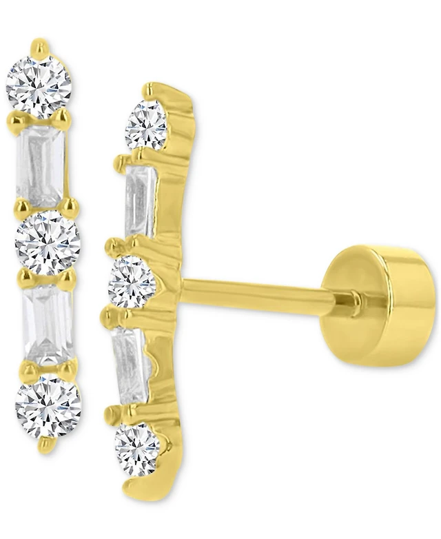Cubic Zirconia Baguette Heart Small Hoop Earrings 14k Gold-Plated Sterling Silver, 0.55"