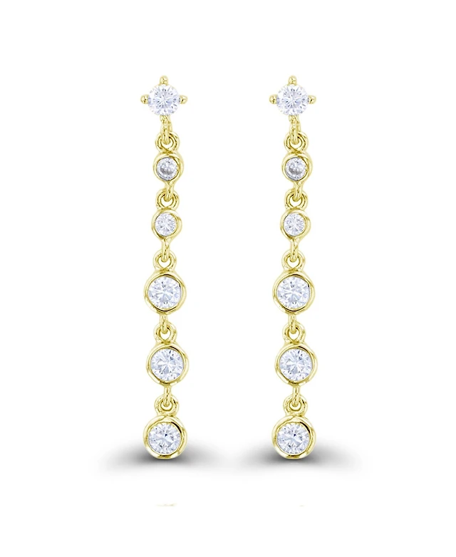 Sterling Silver with White Gold Plated Clear Round Cubic Zirconia Bezel Set Three Tier Drop Earrings