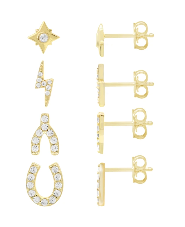 Holiday Lane 4-Pc. Cubic Zirconia Gold-Tone Over Sterling Silver Stud Earrings Set, Macy's Exclusive