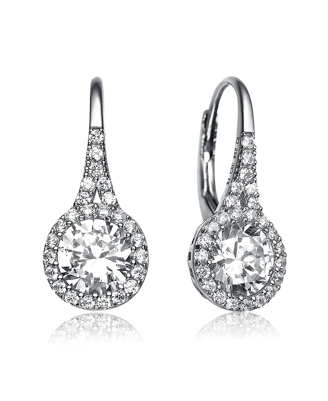 Bling Jewelry Cubic Zirconia Halo Cz Round Solitaire Created Opal Drop Earrings .925 Sterling Silver