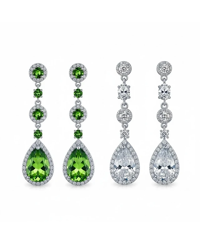 Bling Jewelry Teardrop Marquise Cluster Cubic Zirconia Cz Prom Pageant Statement Dangle Earrings Rhodium Plated Brass