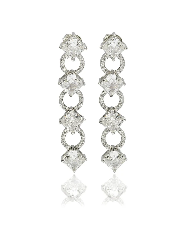 Radiant White Gold Plated Drop Earrings in Sterling Silver with Pear Shape and Oval Cubic Zirconia
