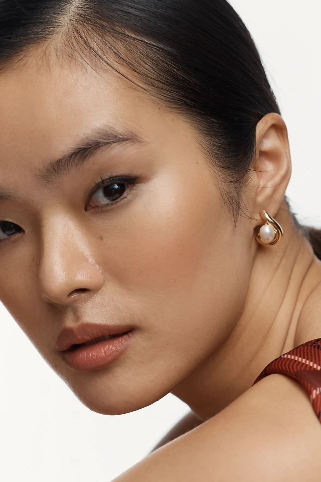 14K Gold Plated Pearl Hoop Earrings