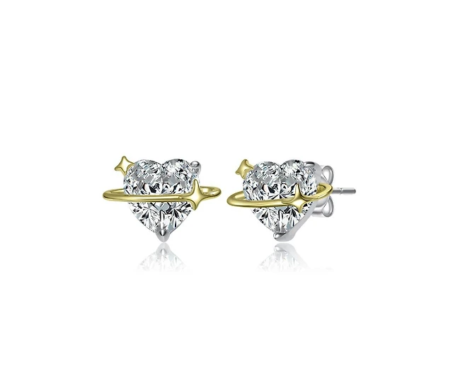 Rachel Glauber Heart Cz & Star Stud Earrings
