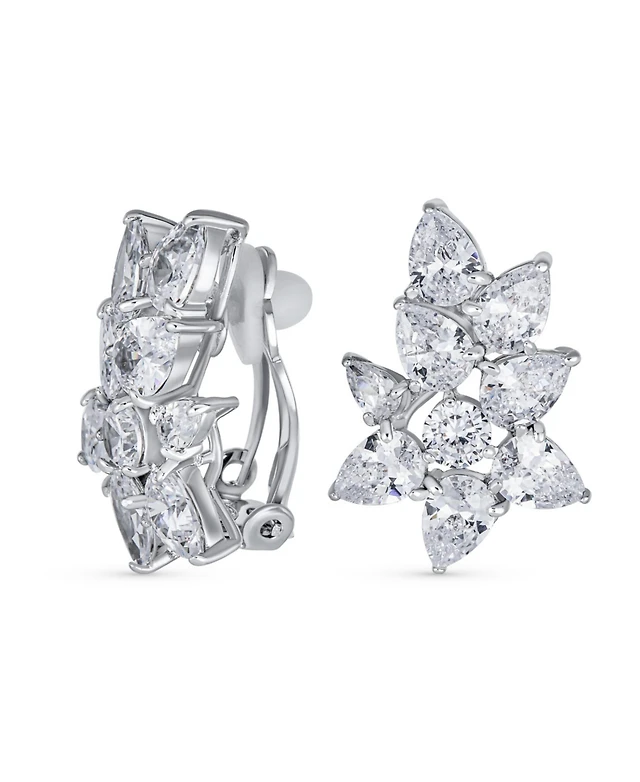 Bling Jewelry Fashion Solitaire Teardrop Halo Cz Cubic Zirconia Statement Y Necklace Matching Dangle Clip On Earrings Jewelry Set Rhodium Plated