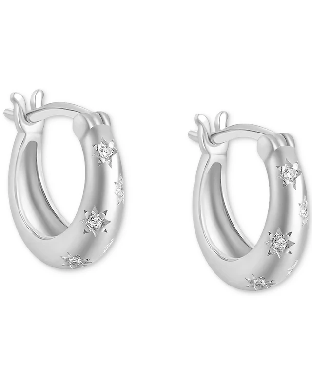 Giani Bernini Pave Ribbed Small C-Hoop Earrings Sterling Silver, 0.62" (also 18k Gold-Plated Silver), Exclusively at Macy's