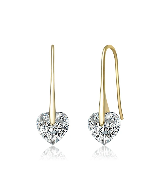 Sterling Silver 14K Gold Plated with Clear Cubic Zirconia Drop Earrings