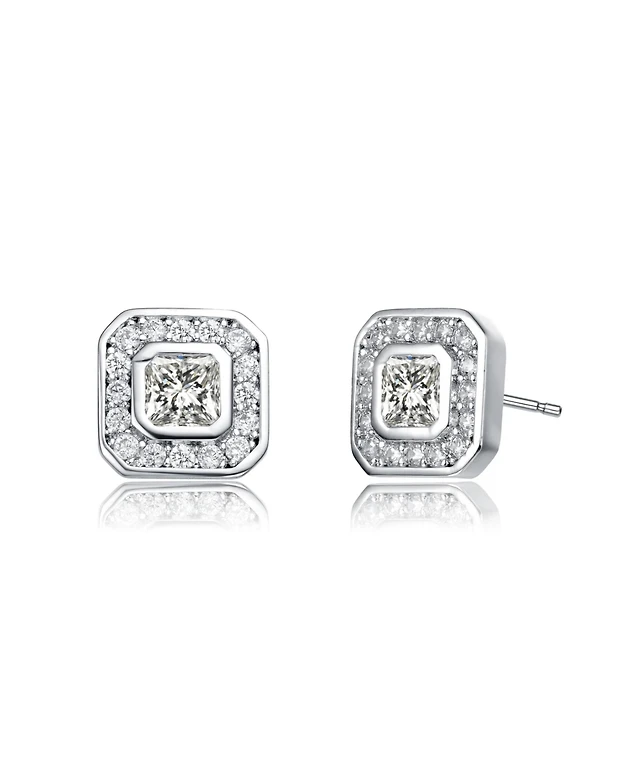 Women's Fine Silver Plated Round Halo Cubic Zirconia Stud Earrings
