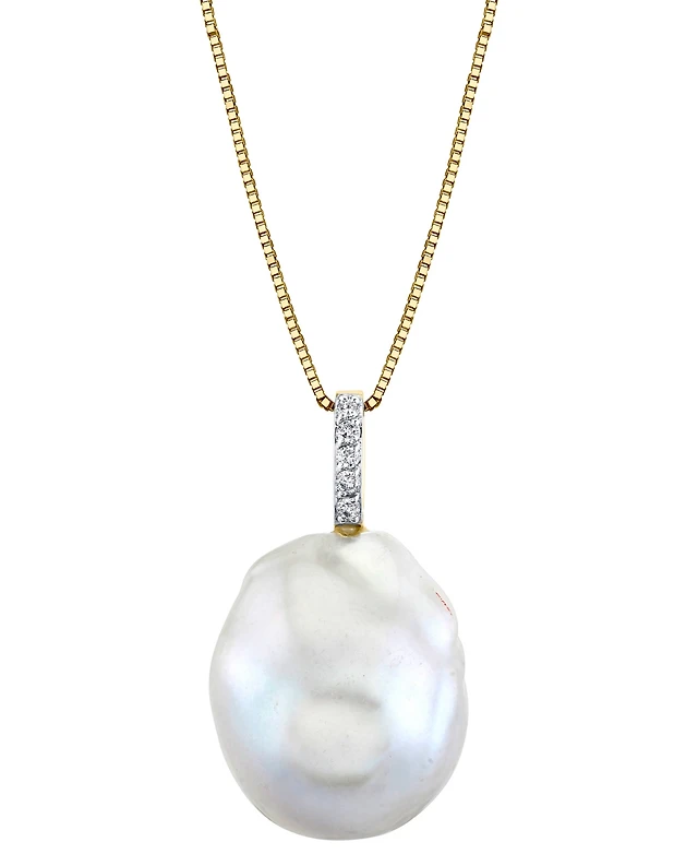 Baroque Cultured Freshwater Pearl (13mm) & Diamond Accent 18" Pendant Necklace in 14k Gold