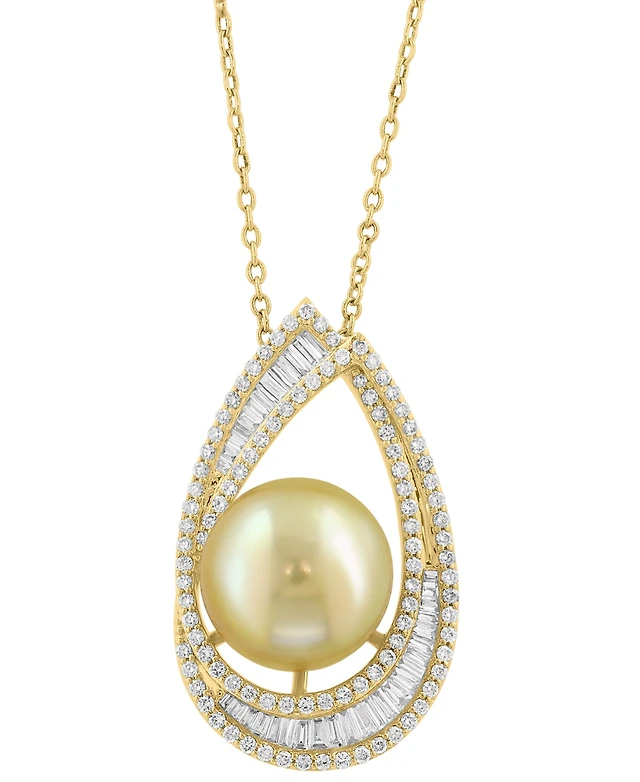 South Sea Cultured Pearl (10-10.5mm) and Diamond (1/10 ct. t.w.) Vintage 17" Necklace in 14k Yellow Gold
