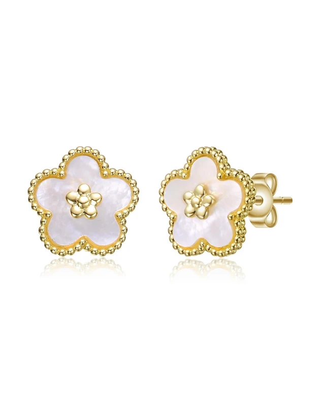 Hollywood Sensation Gold Butterfly Stud Earrings Featuring Mother of Pearl Inlay