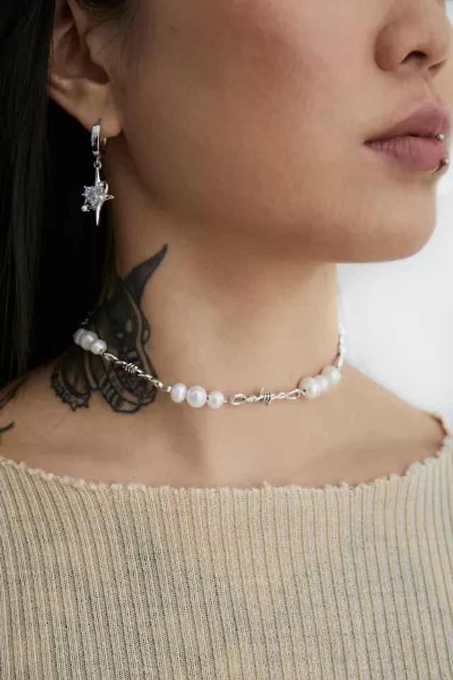 Imitation Pearl with Cubic Zirconia Crystal Swirl Halo Pendant in Silver Plate 18"