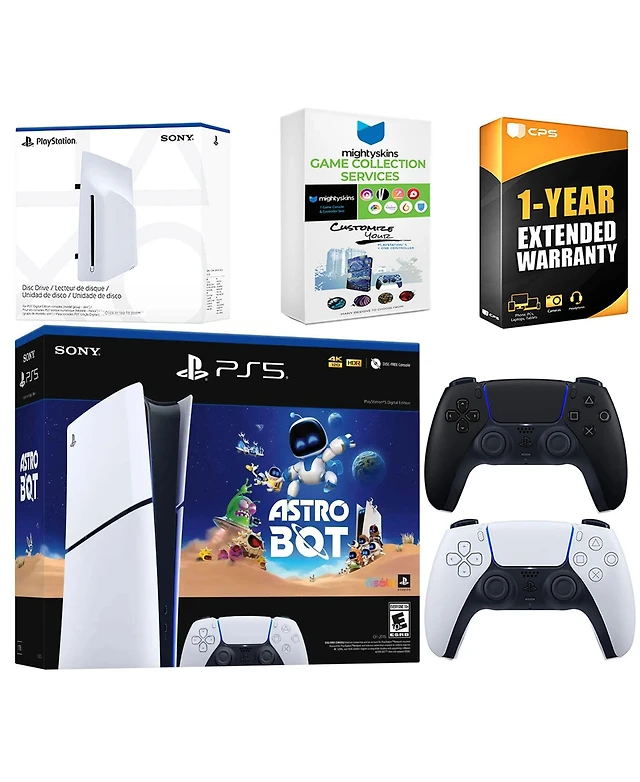 Sony PlayStation 5 Astro Bot Slim Digital Bundle with Disc Drive, Extra Controller, MightySkins Voucher and Year Extended Warranty