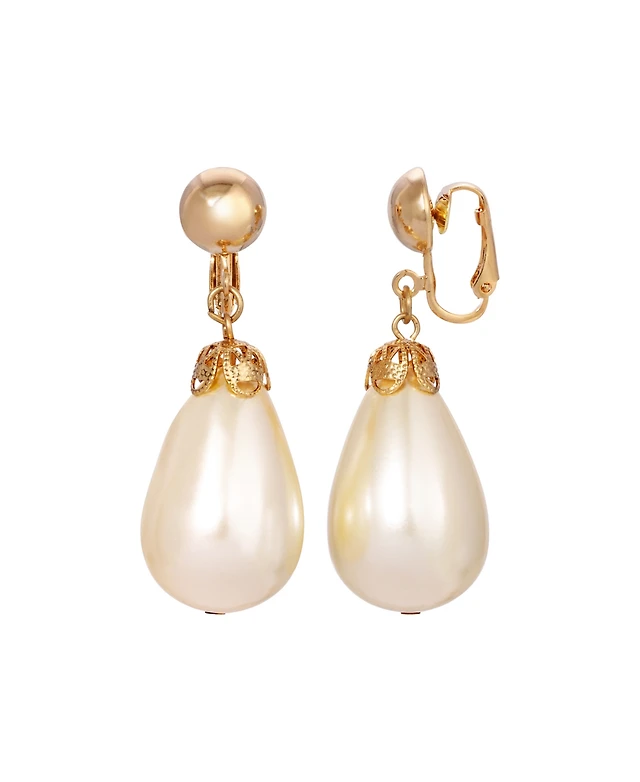 Lauren Ralph Lauren Gold-Tone Glass Pearl Drop Hoop Earrings