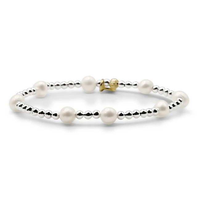 Non-Tarnishing Gold filled, 3mm Ball and Freshwater Pearl Stretch Bracelet