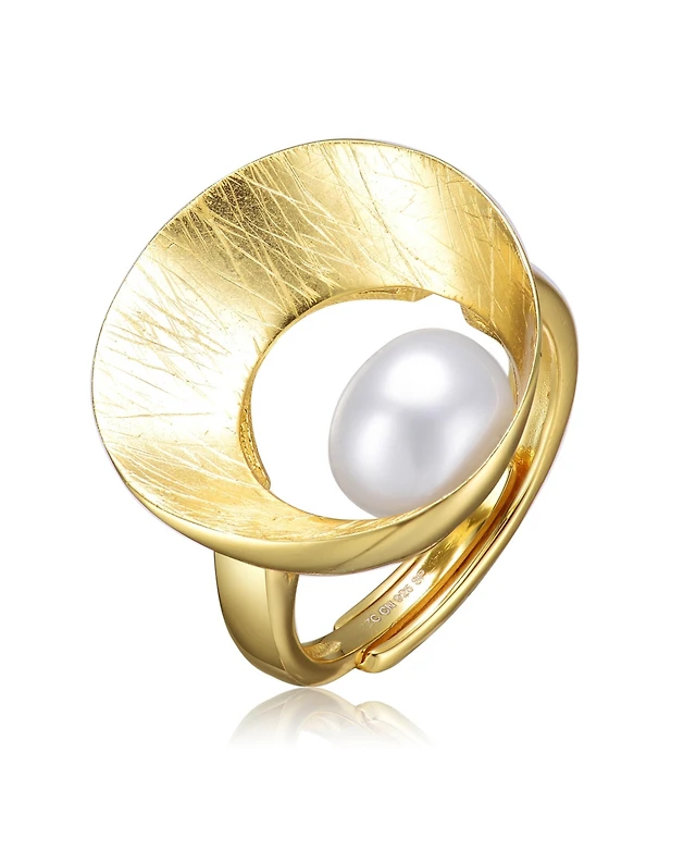 Sterling Silver 14K Gold Plated with Genuine Freshwater Pearl Contemporary Ring