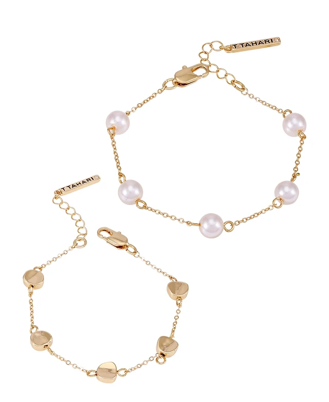 T Tahari Gold-Tone 2-Piece Imitation Pearl Line Bracelet Set
