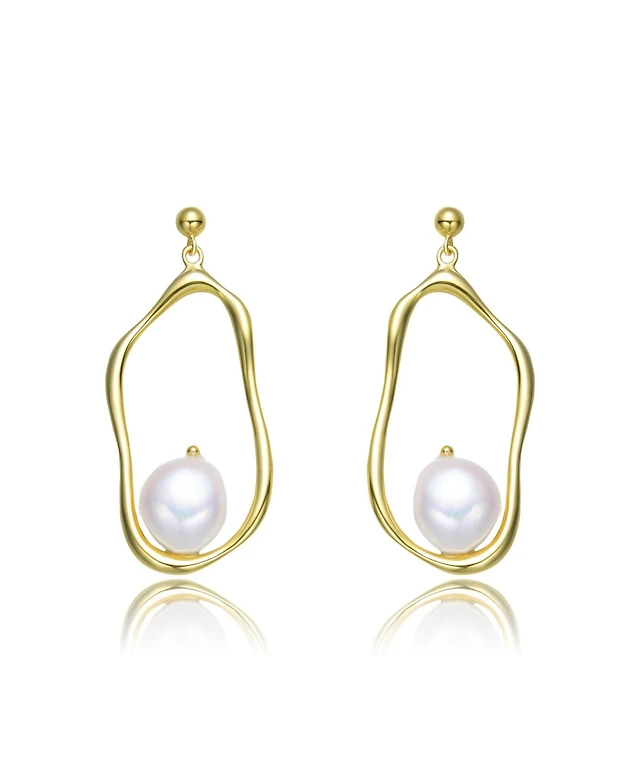 Stylish Sterling Silver 14K Gold Plating and Genuine Freshwater Pearl Round Hoop Earrings