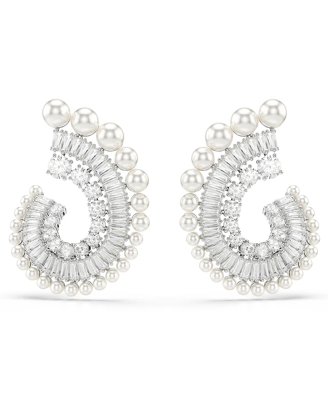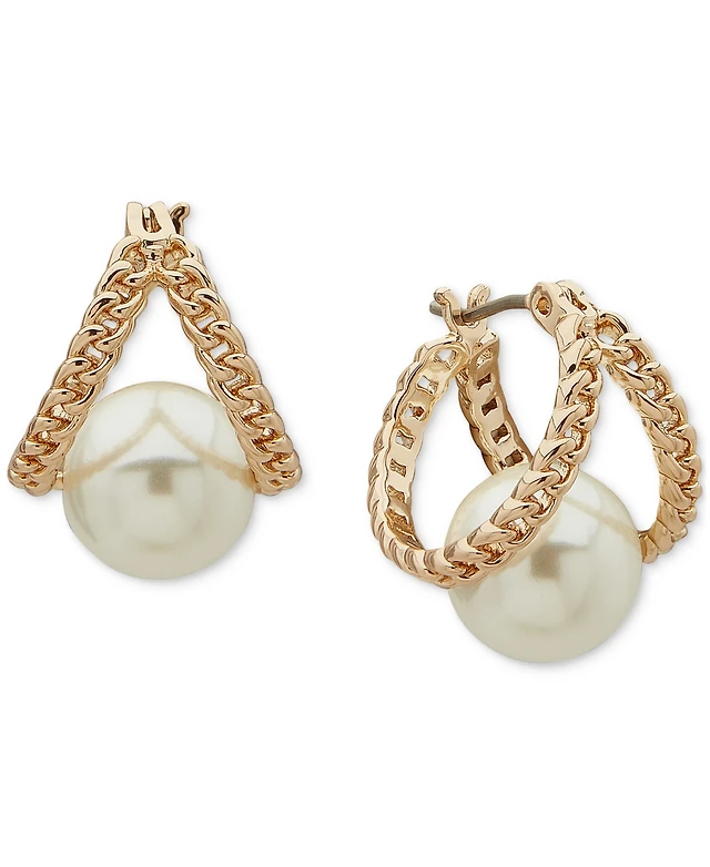 Emily in Paris Gold-Tone Medium Imitation Pearl C-Hoop Earrings, 1.37"