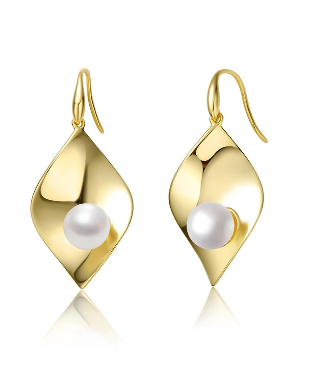 Sterling Silver 14k Yellow Gold Plated with White Coin Freshwater Pearl Twisted Halo Circle Dangle Drop Earrings