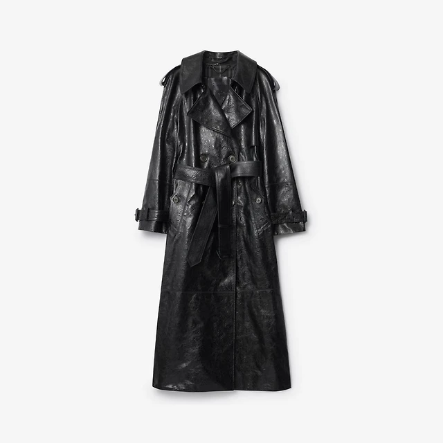 Cropped Embossed Leather Trench Jacket in Moat green - Women, Suede | Burberry® Official