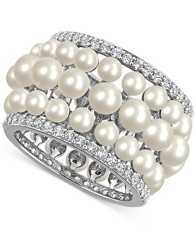 Audrey by Aurate Cultured Freshwater Pearl (5mm) & Diamond (1/6 ct. t.w.) Openwork Double Row Ring Gold Vermeil, Created for Macy's