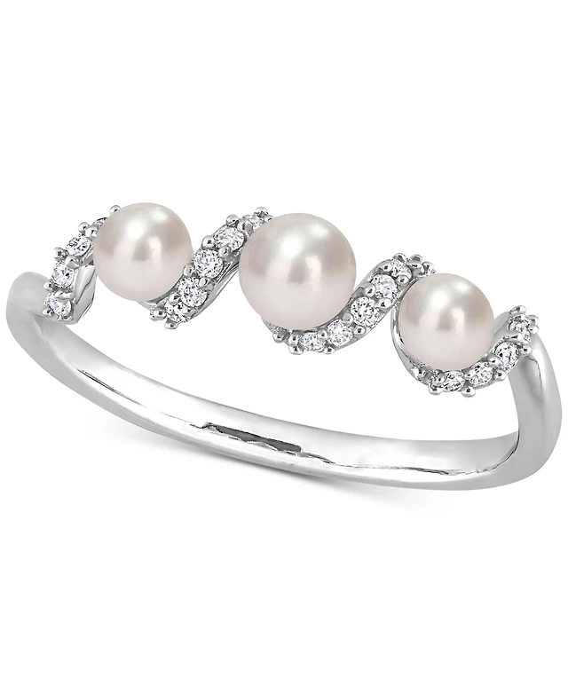 Cultured Freshwater Pearl (3-4mm) & Diamond (1/10 ct. t.w.) Swirl Ring 14k White Gold