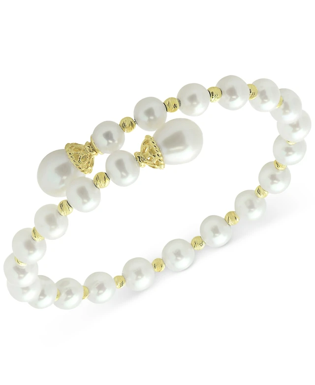 Cultured Freshwater Pearl (6-6-1/2mm & 8-9mm) Bypass Bangle Bracelet in 14k Gold-Plated Sterling Silver