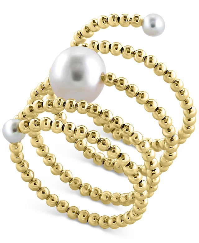 Effy Cultured Freshwater Pearl (3 - 3-1/2mm & 8 - 8-1/2mm) Beaded Coil Ring in 14k Gold
