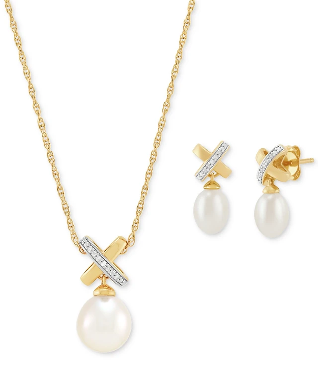 Cultured Freshwater Pearl 8 1 2mm Birthstone Pendant Necklace Stud Earrings Collection In 18k Gold Plated Sterling Silver 18k Rose Gold Plated Sterling Silver Or Sterling Silver