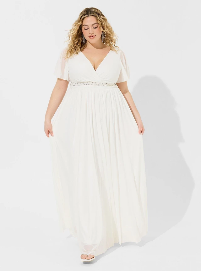 Ny Collection Plus Size Flutter Sleeve Flower-Detail Top