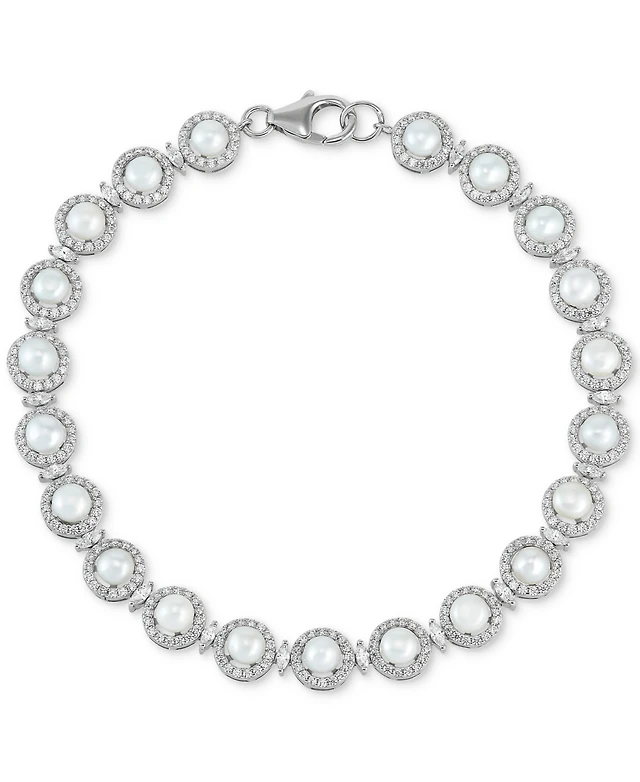 Bling Jewelry Multi Flowers Cz Leaf White Freshwater Cultured Pearl Bracelet 7 Inch