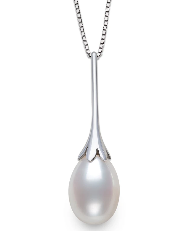 Macy's Freshwater Cultured Pearl Drop Cubic Zirconia Pendant Necklace