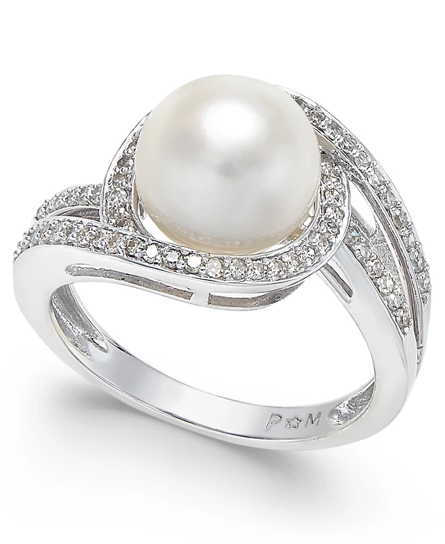 Pandora Organically Shaped Pave Circle Treated Freshwater Cultured Pearl Ring