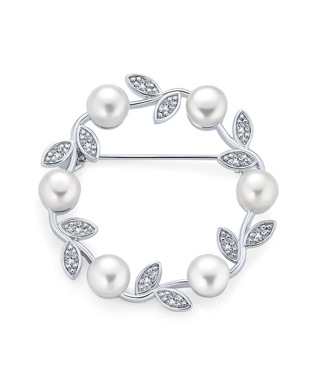Bling Jewelry Bridal Party Cz Halo Side Stones White Solitaire Freshwater Cultured Pearl Engagement Cocktail Ring For Women .925 Sterling Silver