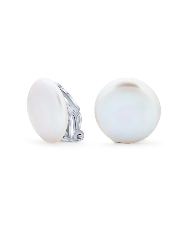 Bling Jewelry Button Style Freshwater Cultured Pearl Clip On Ball Stud Earrings For Women Sterling Silver Non Pierced Ears